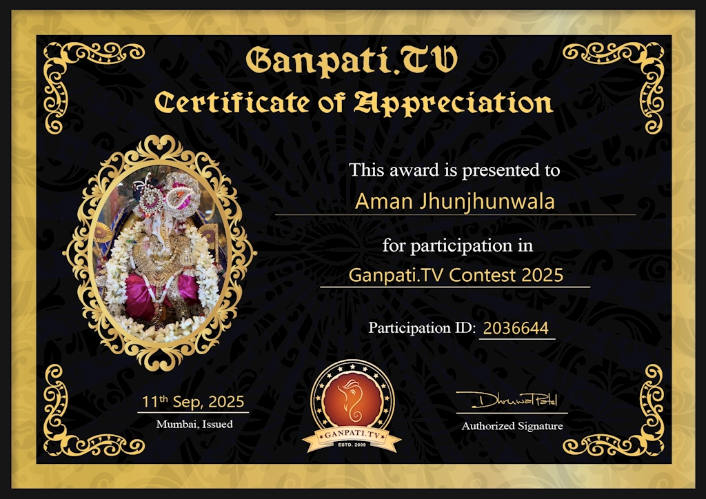 Welcome to Aman Jhunjhunwala's Page on Ganpati.TV 2025