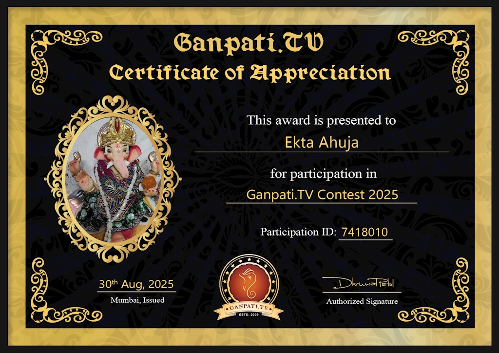 Welcome to Ekta Ahuja's Page on Ganpati.TV 2025