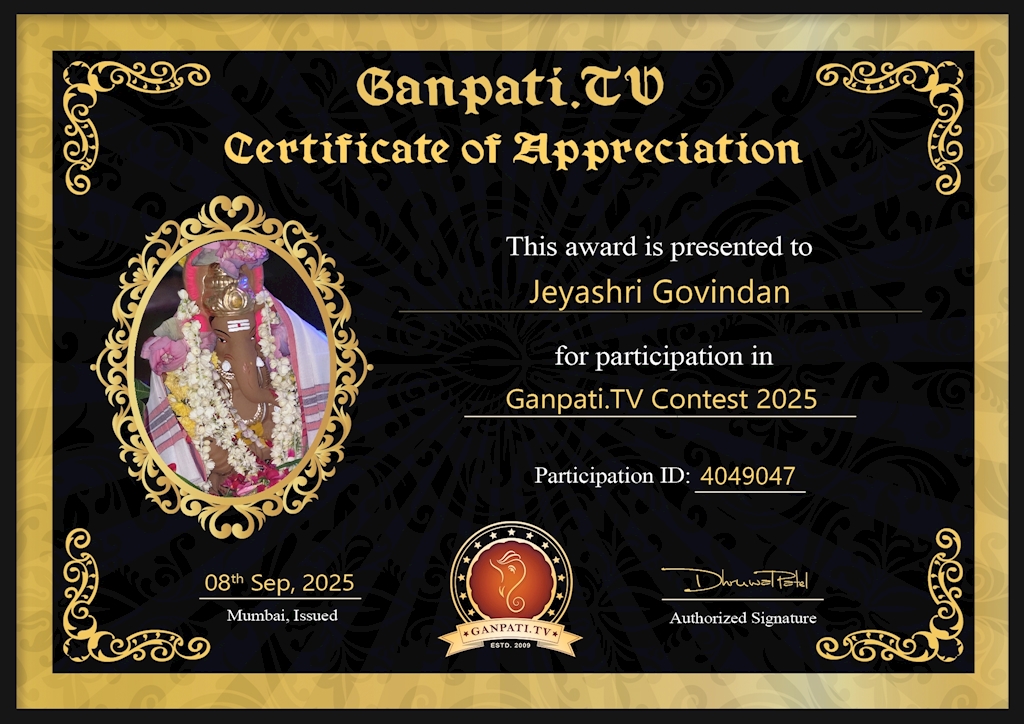 Welcome to Jeyashri Govindan's Page on Ganpati.TV 2025