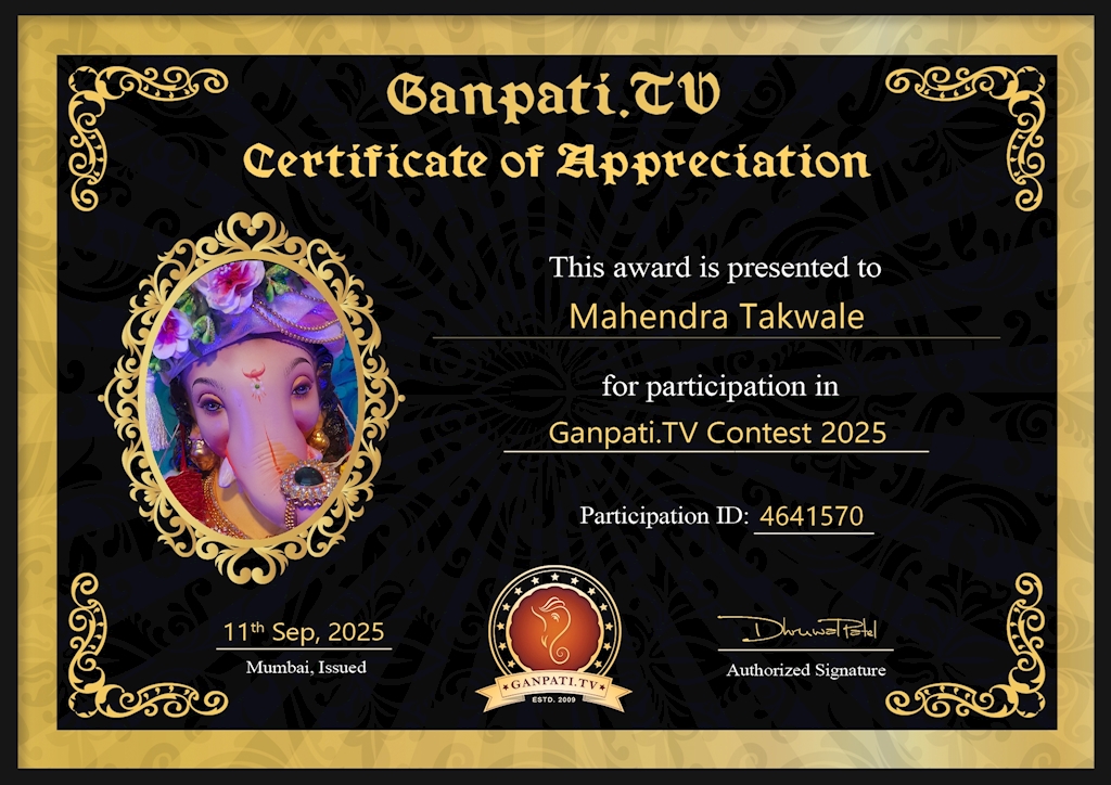 Welcome to Mahendra Takwale's Page on Ganpati.TV 2025
