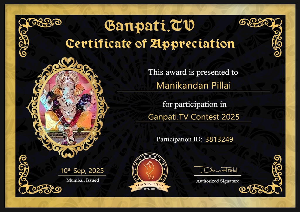 Welcome to Manikandan Pillai's Page on Ganpati.TV 2025