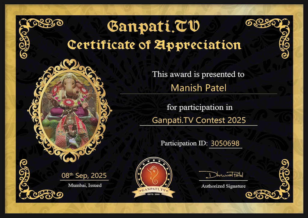 Welcome to Manish Patel's Page on Ganpati.TV 2025