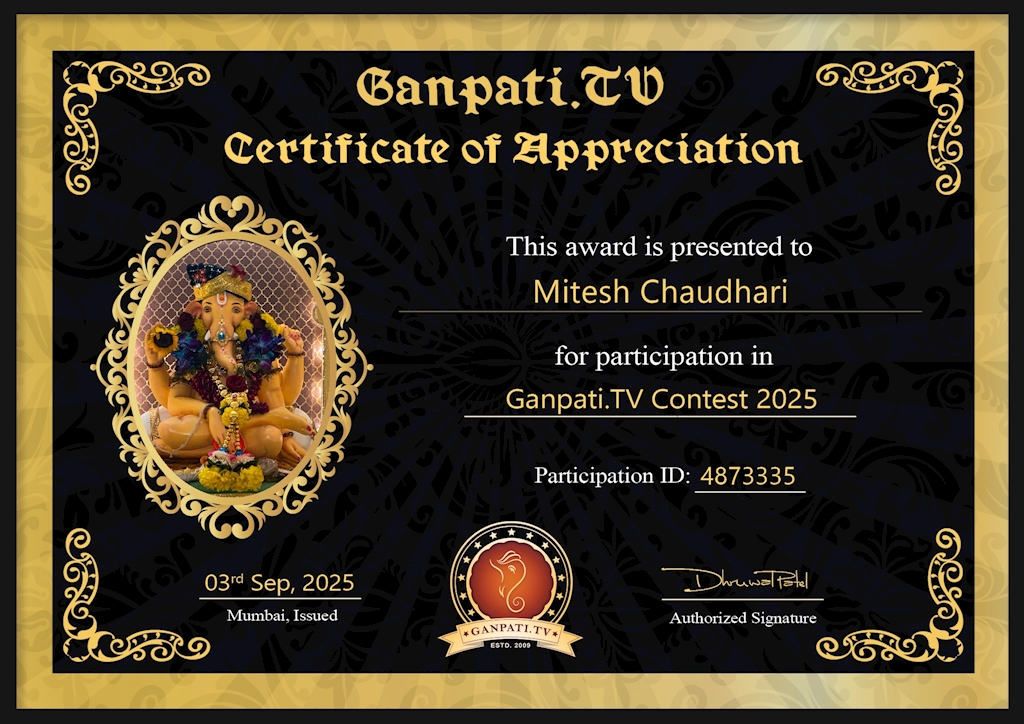 Welcome to Mitesh Chaudhari's Page on Ganpati.TV 2025