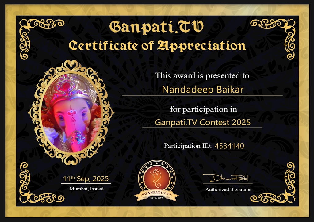 Welcome to Nandadeep Baikar's Page on Ganpati.TV 2025
